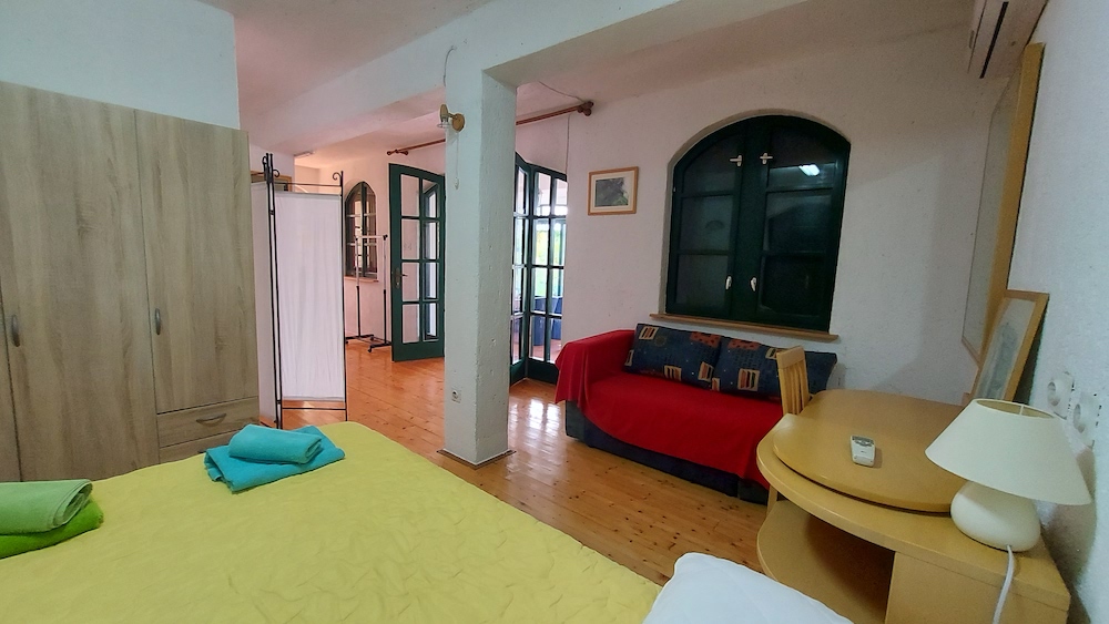 We offer an Apartment on the south side of the house with quiet forest environment with a seaview of a nearby beach. We offer it with 2 rooms, bathroom, living room, a lounge with a kitchen. Available with air conditioning, wireless internet access, parking space, and satellite television.